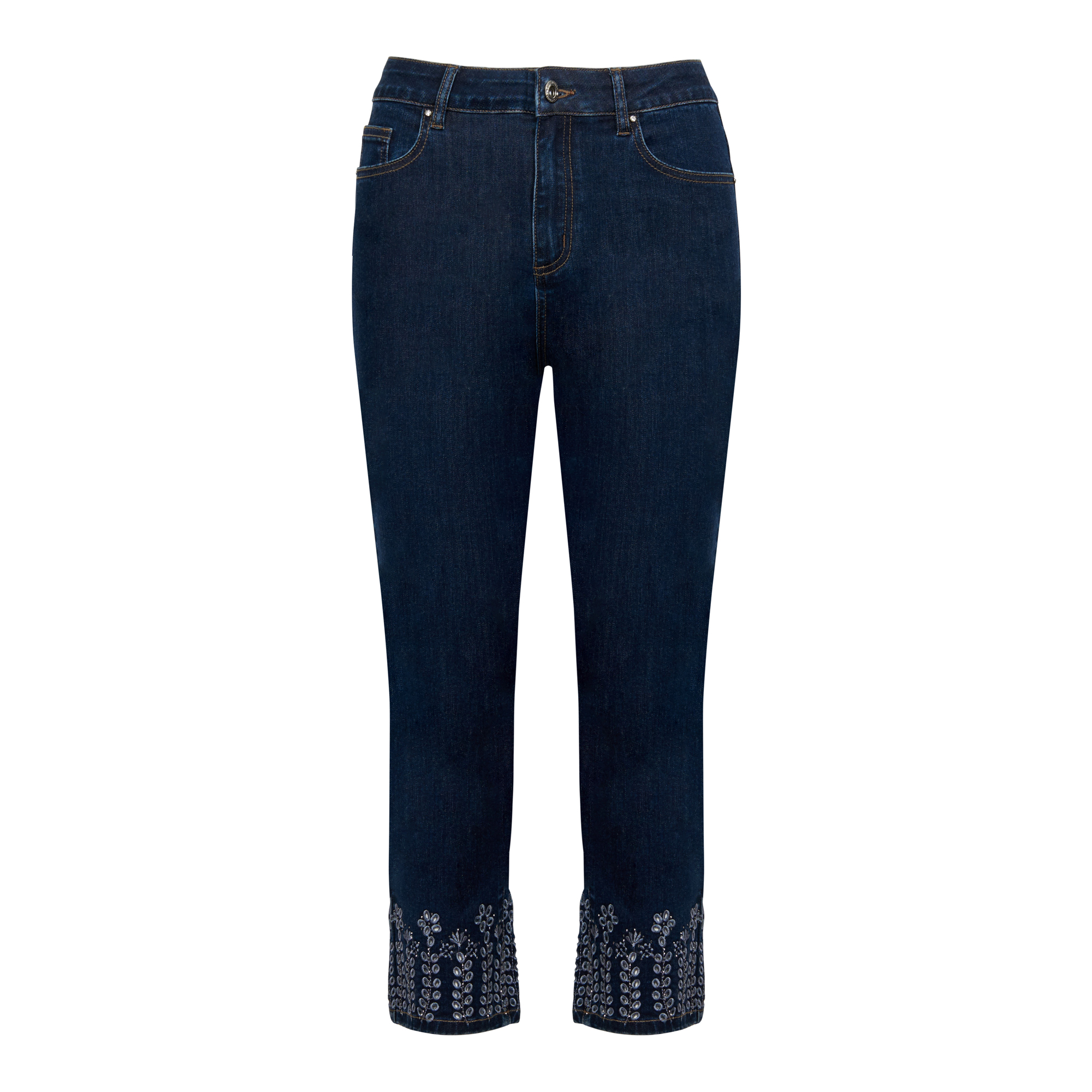 Cut Out Hem Detail Capri Woven Pant - Blue