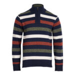 Mens 1/4 Zip Stripe Knitted Jersey - Navy/Col