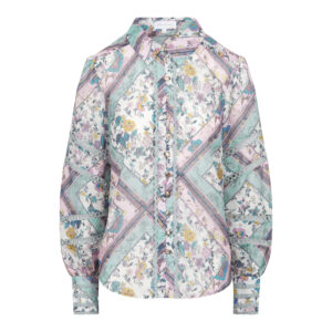 Ladies Long Sleeve Patchwork Printed Woven Shirt