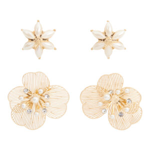 Ladies Contrast Flower Fit And Flare Knit Dress - Blk/White