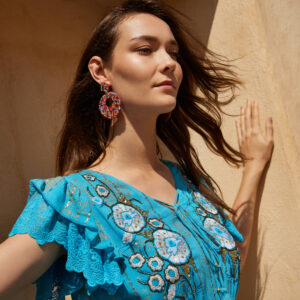 Ladies Glam Floral Pleated Tiered Woven Dress - Multi