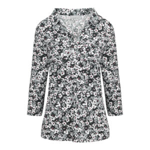 Ladies Double Button Printed Woven Blouse - Blk/White