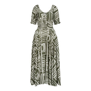 Ladies Geo Printed Fit & Flare Woven Dress - Khaki
