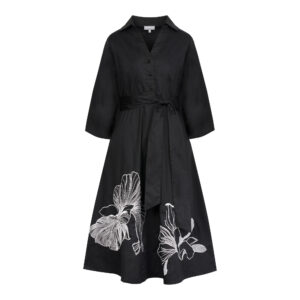 Ladies Embroidered Flower Fit & Flare Woven Dress - Blk/White