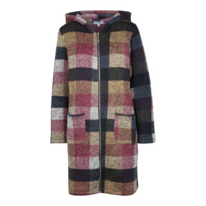 Ladies Knit Check Design Hood Coat - Pink/Col
